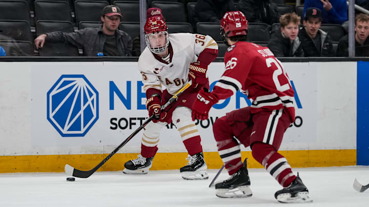 In the first game of the day, Boston College defeated the Harvard Crimson 5-1 after a huge performance from Boston Bruins prospects.