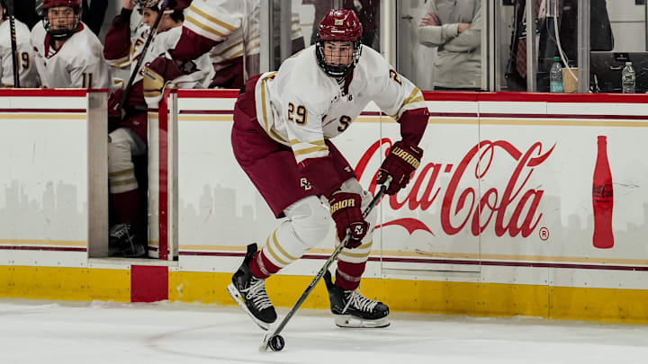 The 6-foot-7 forward, also a Bruins’ first-rounder (2024, pick No. 25), came into 2026 on a five-game goal scoring streak, totaling six goals across those matchups. He had his first career multi-goal game in BC’s 3-1 road defeat of UMass Lowell on Dec. 5, 2025.
