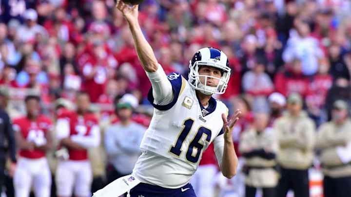 Goff passed for 424 yards and a pair of touchdowns with no interceptions as the Los Angeles Rams went on the road and blasted the Arizona Cardinals 34-7.