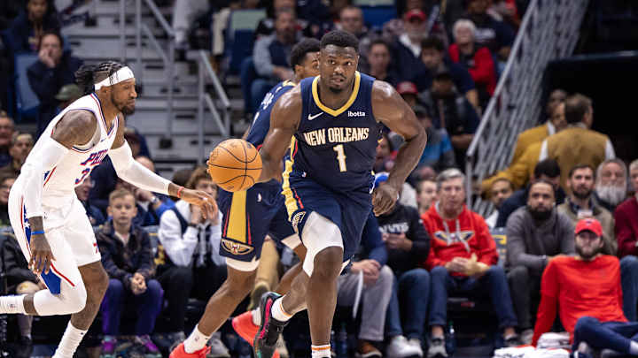Through his 15 games as a fifth-year pro, Zion Williamson is averaging 24.0 points and 5.9 boards, along with his career-high 4.9 assists and 1.1 steals per game. He's shooting 56.7 percent from the field, 50.0 percent beyond the arc (only four attempts), and 64.9 percent at the line.