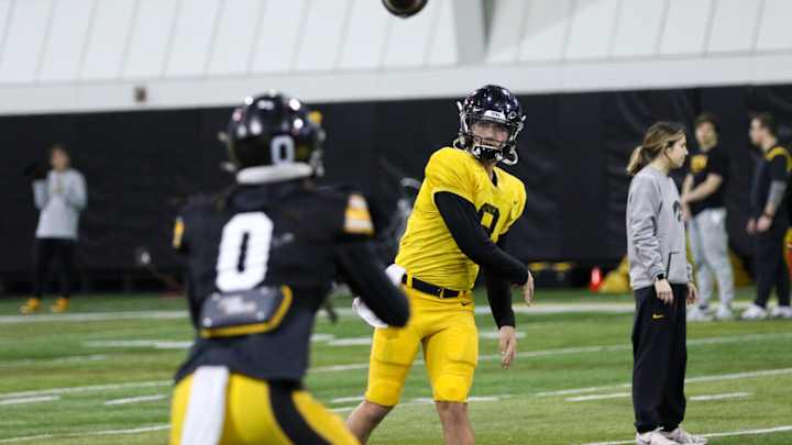 Photo Gallery: Iowa Football Practice 3-29-22Hawkeyes Continue On with Spring Drills TuesdayRob Howe|Iowa quarterback Alex Padilla throws a pass to Diante Vines during practice on March 29, 2022 at the indoor practice facility in Iowa City, Iowa. (Rob Howe/Hawkeyenation.com)In this story:Iowa HawkeyesShare on FacebookShare on XAdd us on Published Mar 29, 2022ROB HOWEHN StaffShare on XFollow robhowehnShare on FacebookShare on XHome/Football