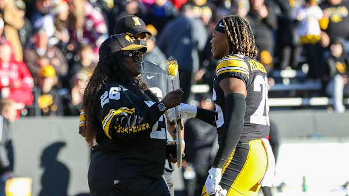 Photo Gallery: Iowa Football Senior Day '22Hawkeyes Celebrate Special Class During Pregame Ceremonies FridayRob Howe|Share on FacebookShare on XAdd us as a preferred sourceIowa's Kaevon Merriweather (26) greets his mother, LaTanya Franklin, with a flower during Senior Day ceremonies before a game against Nebraska on Nov. 25, 2022 at Kinnick Stadium in Iowa City, Iowa. (Rob Howe/HawkeyeNation.com)In this story:Iowa HawkeyesLoading recommendations... Please wait while we load personalized content recommendationsPublished Nov 26, 2022ROB HOWEHN StaffShare on XFollow robhowehnShare on FacebookShare on XHome/Football