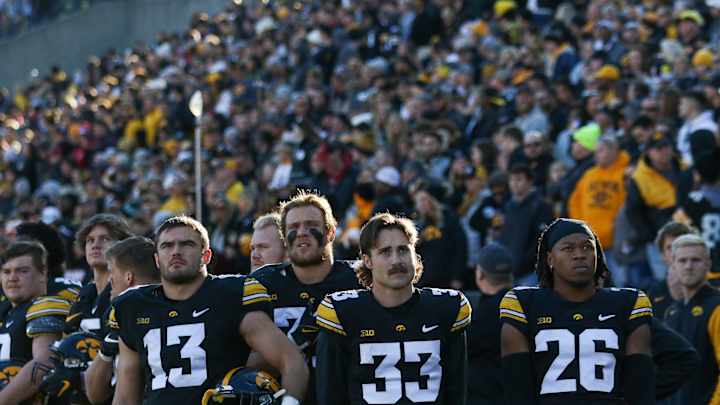 Photo Gallery: Nebraska Upsets IowaHuskers End 7-Game Skid in Heroes Series with 24-17 Win FridayRob Howe|Iowa seniors Joe Evans (13), Jack Campbell (31), Riley Moss (33) and Kaevon Merriweather (26) watch a stadium flyover before a game against Nebraska on Nov. 25, 2022 at Kinnick Stadium in Iowa City, Iowa. (Rob Howe/HawkeyeNation.com)In this story:Iowa HawkeyesShare on FacebookShare on XAdd us on Loading recommendations... Please wait while we load personalized content recommendationsPublished Nov 26, 2022ROB HOWEHN StaffShare on XFollow robhowehnShare on FacebookShare on XHome/Football