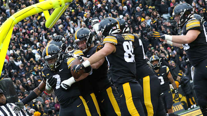 Photo Gallery: Iowa Tops WisconsinImages from Saturday's B1G West Matchup in Kinnick StadiumRob Howe|Iowa's Kaleb Johnson (2) is mobbed by teammates after scoring a touchdown against Wisconsin on Nov. 12, 2022 visiting Kinnick Stadium in Iowa City, Iowa. (Rob Howe/HawkeyeNation.com)In this story:Iowa HawkeyesShare on FacebookShare on XAdd us on Loading recommendations... Please wait while we load personalized content recommendationsPublished Nov 13, 2022ROB HOWEHN StaffShare on XFollow robhowehnShare on FacebookShare on XHome/Football