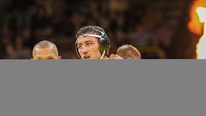 The Hawkeyes won battles of ranked wrestlers at 184 and 197. Abe Assad scored a takedown in the first and second period to win 6-3 at 184 and Jacob Warner’s takedown with one minute, seven second left in the third sent him to a 3-0 decision at 197.