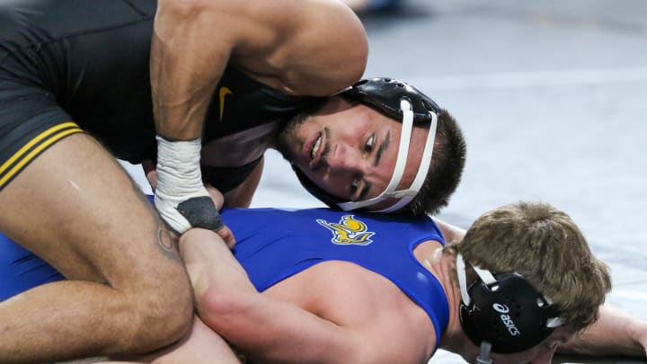 Photo Gallery: Iowa Wrestling at Soldier SalutePictures from Friday's Action in CoralvilleRob Howe|Share on FacebookShare on XCopy ArticleIowa 141-pounder Real Woods (top) wrestles South Dakota State's Caleb Gross during the Soldier Salute on Dec. 30, 2022 at XTream Arena in Coralville, Iowa. (Rob Howe/HawkeyeNation.com)Share on FacebookShare on XAdd us on Published Dec 31, 2022ROB HOWEHN StaffShare on XFollow robhowehnShare on FacebookShare on XCopy ArticleHome/Wrestling