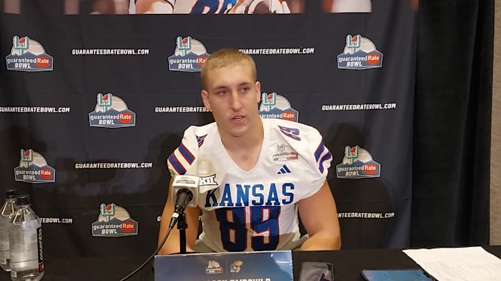 Mason Fairchild on preparing for bowl games and his final game.Kansas Jayhawks tight end Mason Fairchild discusses preparing for his final game with the Jayhawks during Media Days at the Guaranteed Rate Bowl in Phoenix, AZ.Blue Wings Rising|Share on FacebookShare on XAdd us on Loading recommendations... Please wait while we load personalized content recommendationsPublished Dec 25, 2023BLUE WINGS RISINGShare on FacebookShare on XHome/Videos