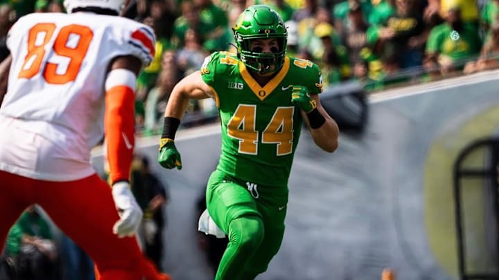 The 6-foot-3, 238-pounder is fresh off of his third season in Eugene where he has been utilized in multiple ways under Dan Lanning and Co. on both offense and special teams.