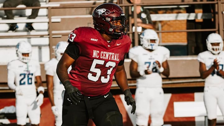 The North Carolina Central offensive line helped produce a rushing attack that went for for 149 yards per game along with 4.3 yards per carry across the 2025 season - allowing just three sacks with Sprinkle paving the way in the trenches.
