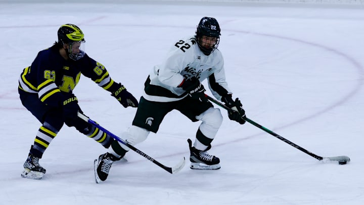 EAST LANSING, Mich. -- No. 2 Michigan State and No. 13 Michigan picked up right where they left off when the rivals faced off at Munn Ice Arena on Friday, the first game of their second season series.