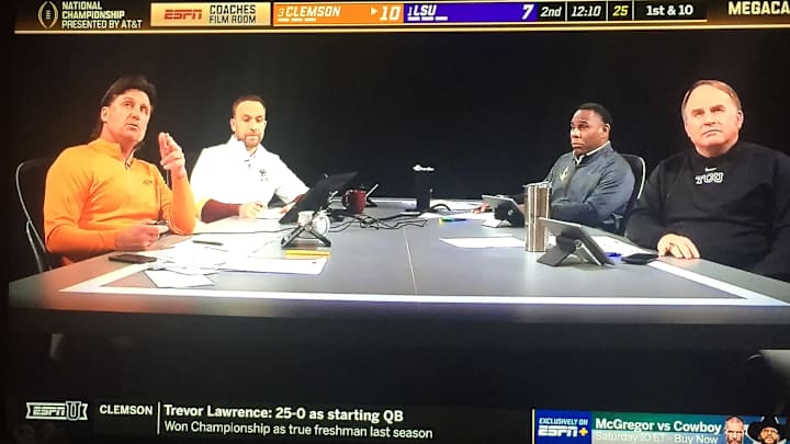 However, Gundy has yet another vocational choice that he put on display on ESPN2 and ESPNU on Monday night before and during the CFP National Championship Game LSU won over Clemson 42-35.