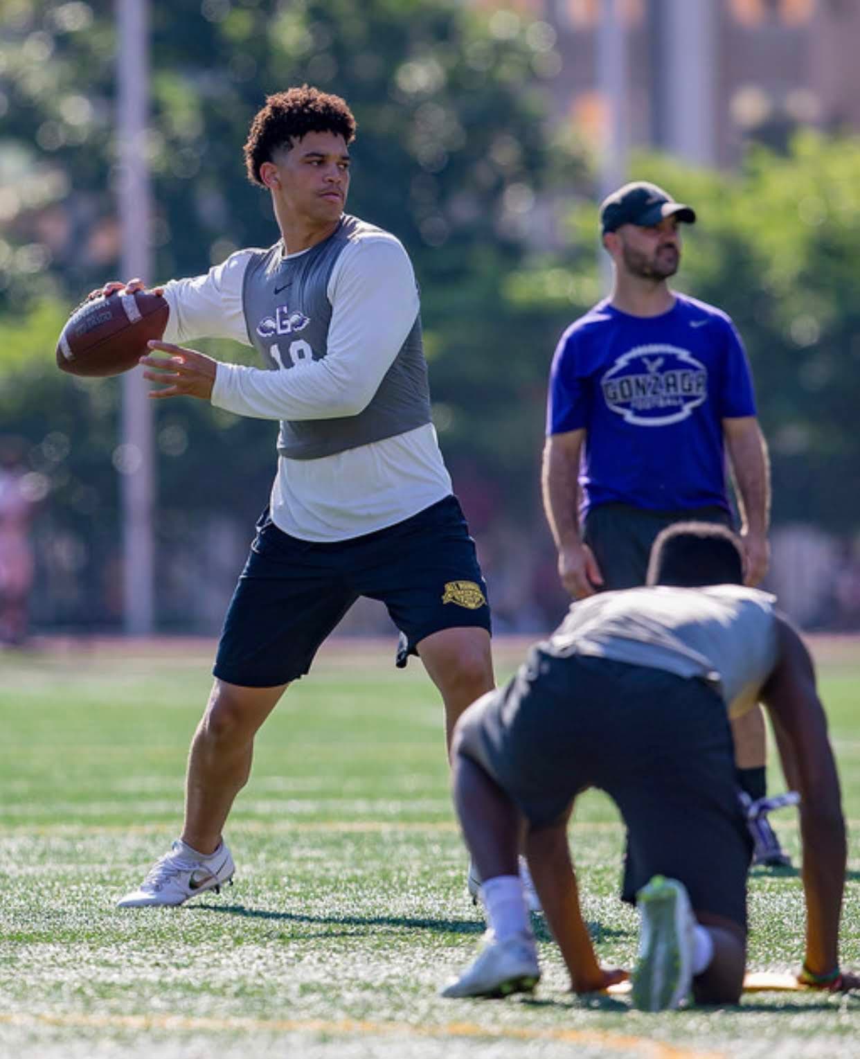 * All the QB gurus that have had a hand in my development - first and foremost my mentor Coach Russ, my first youth league OC and QB coach; Coach Baucia - QBFactory and the QBFactory family. Coach Baucia's been there from the beginning, working with me every week. Taught me how to take a snap under center. Special dude. Scottie Montgomery saw something in me at Duke camp and always been there for me. Coach Tony Ballard, met him up at FBU camp my first year as a QB and he's always been there for me. Going to ATL to see him. Him calling me, talking me through stuff, special dude. Coach Will Hewlett - traveled all the way to the west coast to work with him when I was like 12 - we still talk all the time.