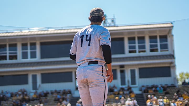App State's Gage Peterson is one of the best pitchers in the Sun Belt who hasn't really gotten a lot of publicity so far, as he came into Saturday's contest with a 3-0 record and a 1.35 ERA. However, the Golden Eagles were able to cut his day shorter than he would've liked by forcing him into a 40-plus pitch inning in the bottom of the first.