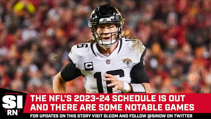 The NFL released its 2023-24 regular season schedule on Thursday, May 11. There are some notable games in the schedule. Jacksonville becomes the first NFL team to play back-to-back games overseas with two games in London. Last year's two Super Bowl teams, Kansas City and Philadelphia, will meet in Week 11. And Aaron Rodgers makes his debut as a New York Jet.