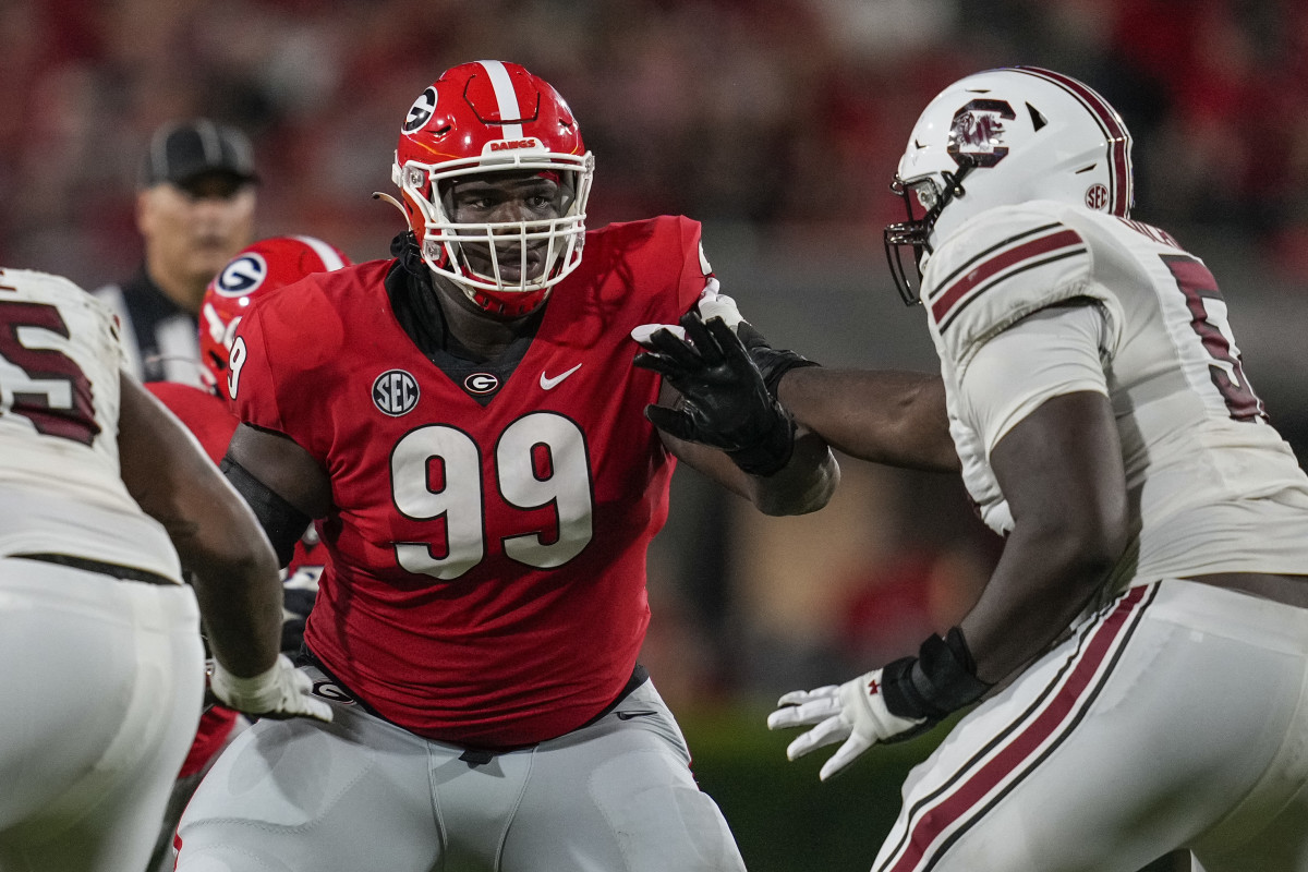 **Second matchup to consider: Defending the run is Georgia’s specialty, thanks in large part to nose guard Jordan Davis, all 6’6”, 360 pounds of him. It will be hard for Arkansas to run the football against Georgia’s front seven to begin with, but handling the best nose guard in the country will be the biggest priority. He’s quite disruptive, already registering 1.5 sacks and three tackles for loss despite being constantly double teamed.