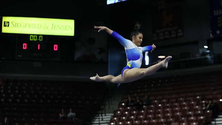 Senior Pauline Tratz was unable to repeat as Pac-12 champion on floor after stepping out, but the other five participants were able to wipe out her low score. Campbell scored a 9.850, Chiles and Flatley had 9.875, freshman Brooklyn Moors went for 9.900 and Malabuyo topped everyone with a 9.925.