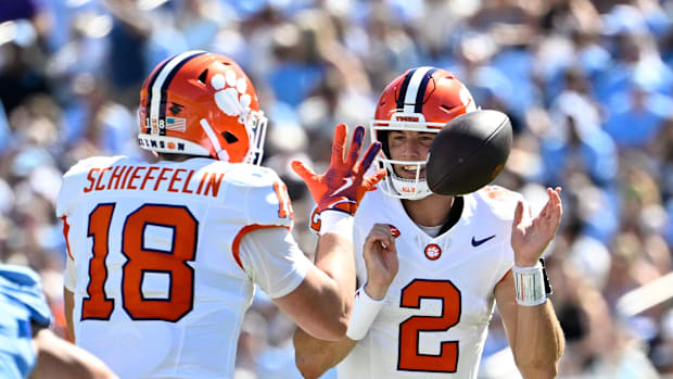 Cade Klubnik's pass to Christian Bentancur scored the Tigers' third touchdown of the day, putting the Tar Heels in a huge hole before the first 15 minutes of the game concluded. The 5-play, 57-yard and 2:48 was Clemson's longest drive up until that point — showing how poorly North Carolina's defense showed up. After three drives, Klubnik has two touchdowns on 7/7 pass attempts and 128 yards.