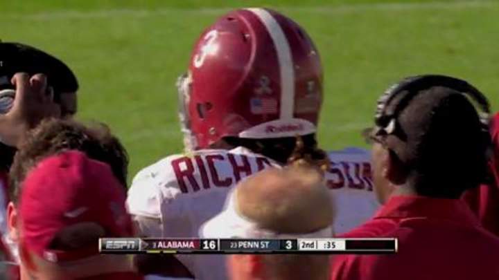 No. 3 Alabama dominates Penn State 27-11A.J. McCarron throws for 163 yards and 5-yard touchdown that he zips through traffic to Michael Williams as the Alabama Crimson Tide beat PennSI Staff|Share on FacebookShare on XAdd us on A.J. McCarron throws for 163 yards and 5-yard touchdown that he zips through traffic to Michael Williams as the Alabama Crimson Tide beat Penn State 27-11.Published Sep 16, 2011SI STAFFShare on FacebookShare on XHome/College