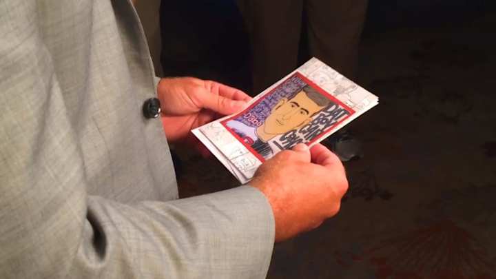 James Bates shows Dabo Swinney the portrait he inspired