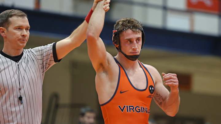 In Friday's match at Curry Arena at Queens University of Charlotte, Patrick McCormick opened things up with a major decision at 125 pounds. McCormick was one of four Cavaliers to earn major decisions in the match, as Dylan Cedeno (141), Justin Phillips (174), and Neil Antrassian (184) also earned four-point wins for Virginia. Additionally, Jarod Verkleeren (149), Denton Spencer (157), and Michael Battista (197) won via technical fall to score five points each for UVA. Eric Roggie (133) and Justin McCoy (165) each pinned their opponents to bring Virginia's total to 44 points.