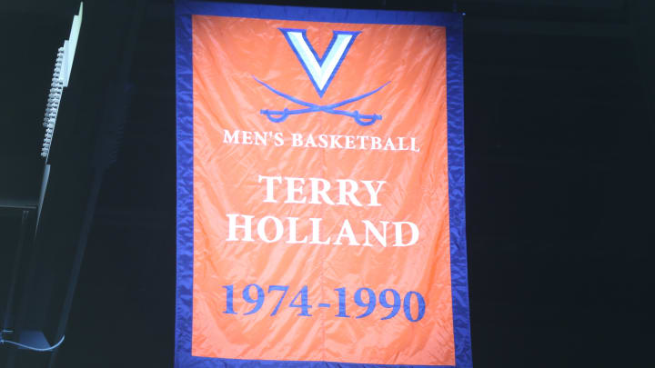 Virginia director of athletics Carla Williams directed everyone's attention up to the rafters of John Paul Jones Arena, where a banner was unfurled honoring Terry Holland and his service to the University of Virginia.