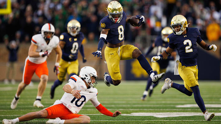 Of the four touchdowns the Fighting Irish scored in the first half, only one of those drives started on Notre Dame's side of the 50-yard line. Thanks to UVA's offensive turnovers, the Irish had touchdown drives of 25, 2, and 32 yards in the first half to seize control of the game and the UVA defense cannot be assigned the blame for those points being scored. In the first half, Virginia held Notre Dame to 0/5 on third downs and forced the Irish to go three-and-out five times, including on four-consecutive drives. Yes, Notre Dame got loose for a few big plays, including a 76-yard touchdown run by Jeremiyah Love in the third quarter that was the lone touchdown of the second game for the Irish, but the UVA defense played well enough for this to be a closer game had the Cavalier offense been able to match that level of play.