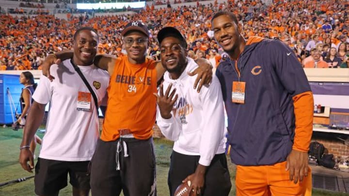 Former Virginia football standouts Bryce Perkins, Joe Reed, Charles Snowden, and Hasise DuBois were on the sidelines for the game.