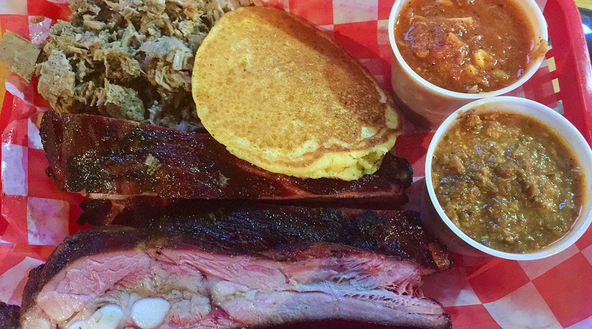 So if you’re in Atlanta, go to B’s Cracklin' Barbecue because the pulled pork is juicy and tender and loaded with bits of bark. Go because the ribs are moist and meaty and require the tiniest pull to come clean off the bone for the perfect bite. But if you happen to take some of that pulled pork and place it atop one of B’s delectable cornbread cakes and then you happen to drizzle some of B’s Peach Mustard barbecue sauce on the meat, I won’t judge you. If you happen to roll up that circle of cornbread and eat the entire concoction like the countriest taco the world has ever seen, I certainly wouldn’t blame you. That’s what I did on two recent visits to B’s.