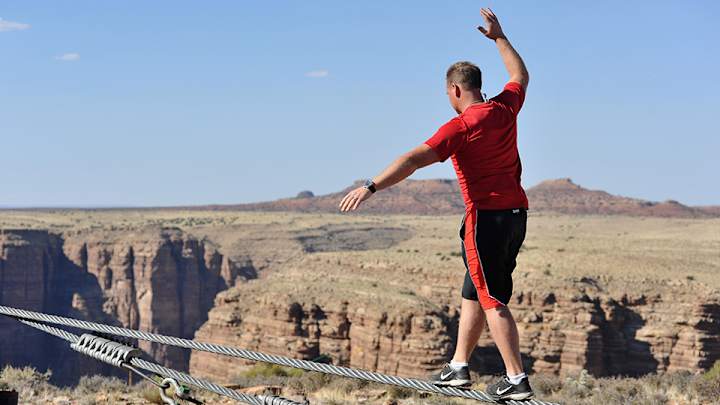 Nik Wallenda prepares to walk between two skyscrapers — blindfolded