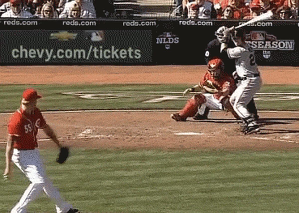 7. He mashed a grand slam off Mat Latos in Game 5 of last year's NLDS that elicited hilarious dejection from the opposing pitcher and catcher.