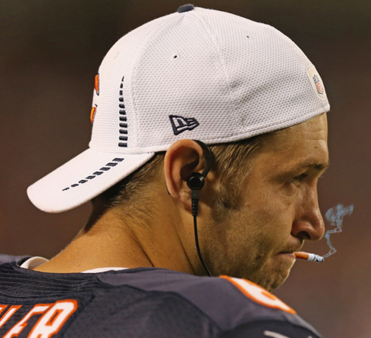 Photos of Jay Cutler doing what Jay Cutler does, just with a cigarette Photoshopped into his mouth.