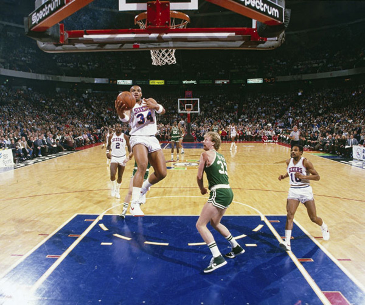 Several people emailed me this photo of a Sixers fan passed out in the front row during last night's game and it's hard to blame him. The Sixers lost by 20, at home, to the Bucks (a.k.a. - the NBA's worst team). So for all the ailing Philly fans out there, I present a young Charles Barkley gliding past Larry Bird on his way to the hoop.