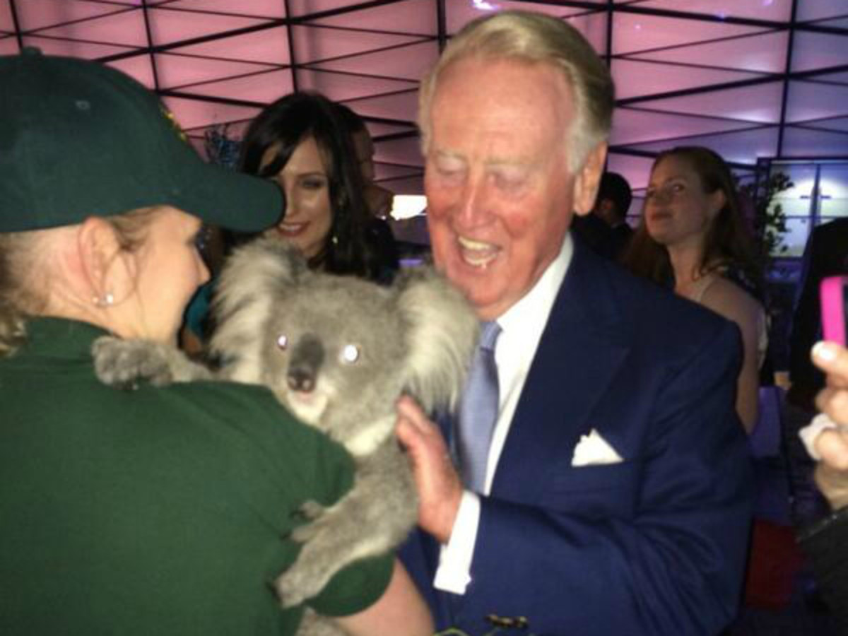 Great news, everyone! Vin Scully is friends with a koala now!