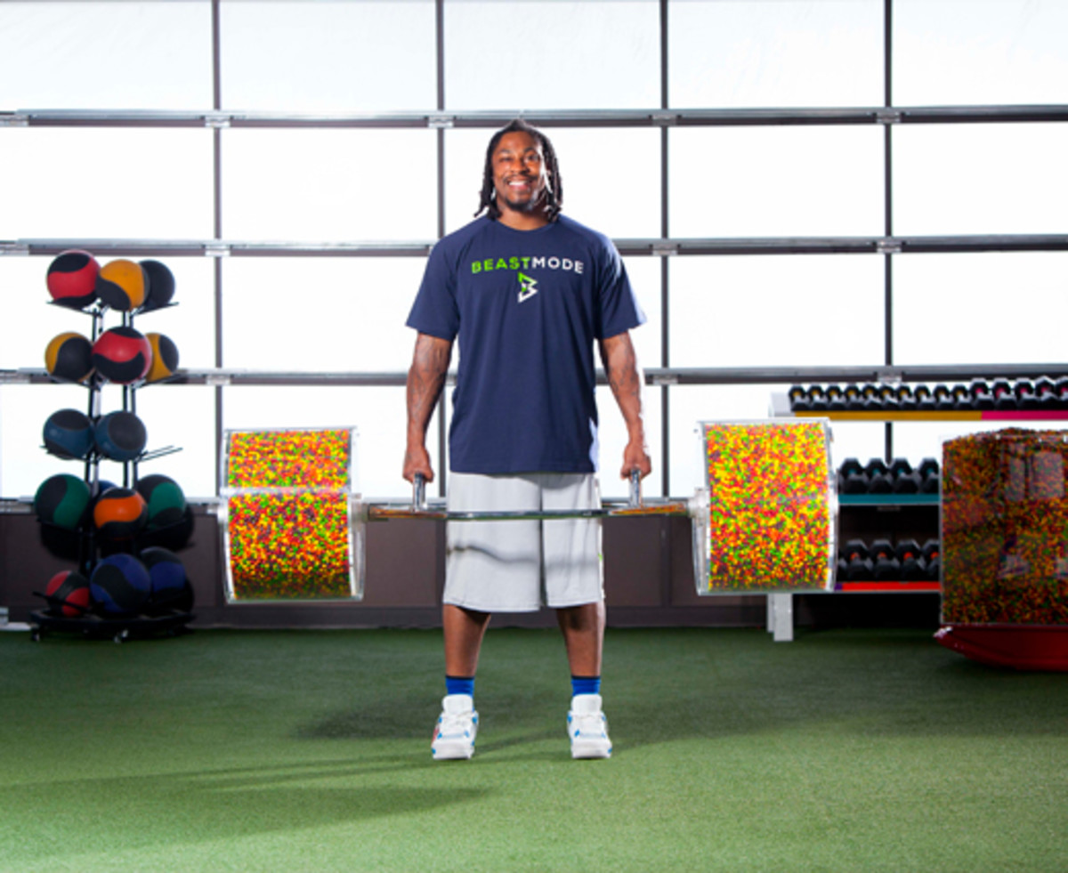 The Seahawks running back has a new ad out for Skittles in which he powerlifts enormous amounts of his favorite candy. Overall it's a strong ad but still not quite as effective as the Chrissy Teigen Skittles waterfall one.
