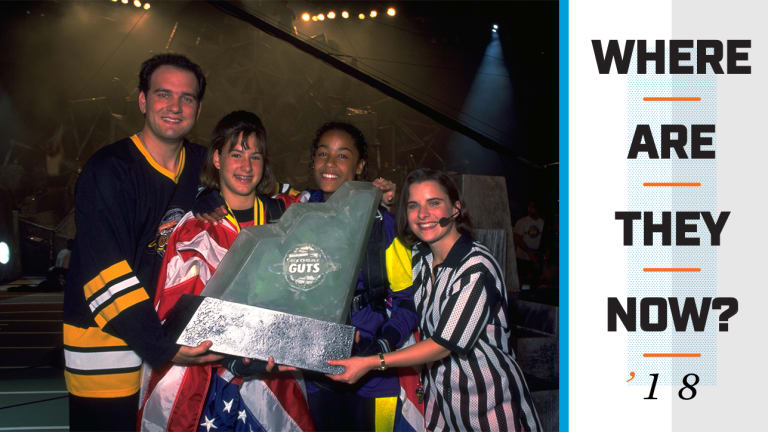 After four seasons and 160 episodes—including the spinoff Global Guts, with contestants from Mexico, Israel and across Europe—the show was cancelled in 1996. But Nickelodeon was born as the land of reruns, and Guts enjoyed an afterlife, with repeats airing until 2007. In ’08 there was even a rebirth: a family version called My Family’s Got Guts, which ran for one season. And that nostalgia is catching on. The minor-league Brooklyn Cyclones hosted a Guts night in ’15—fans got a (replica) piece of Crag and the Cyclones wore Guts-inspired jerseys. A year later, Mountain Dew built a replica Crag in New York City (with input from Taylor) as part of a marketing campaign. The show even has a celebrity following: Pulitzer Prize–winning playwright Lin-Manuel Miranda called one former winner his hero, and SI Swimsuit model Chrissy Teigen tweeted, “I would pay 1,000 dollars per episode to see the same people from Guts climb the same agro [sic] crag 20 years later.”