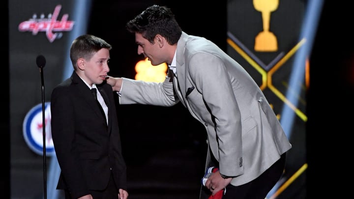 The NHL also invited Anderson to attend the annual NHL awards show in Las Vegas on Wednesday night, and he was called on stage for a special message from Price, who “couldn’t be here tonight.” Price, of course, was waiting backstage to walk out and surprise Anderson with an autographed jersey. Anderson (along with most of the crowd) was brought to tears by the moment.
