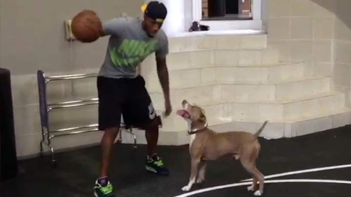 Indiana Pacers guard Paul George plays 1-on-1...with his dog