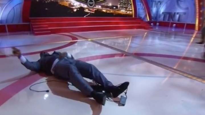 Watch: Shaq falls tumbles on TNT set