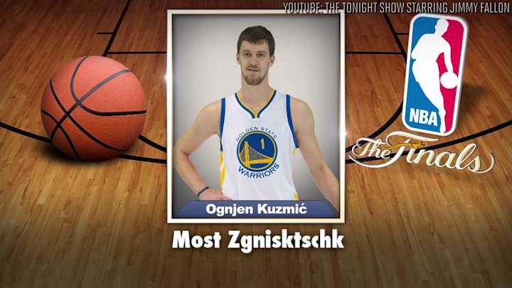 Jimmy Fallon's love of athlete headshots continued on Thursday night with an NBA Finals installment of his "Tonight Show Superlatives" segment.