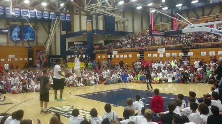 Chicago Bulls legend Michael Jordan and current Bulls guard Jimmy Butler participated in a good, old-fashioned shootout at Jordan's youth summer camp this