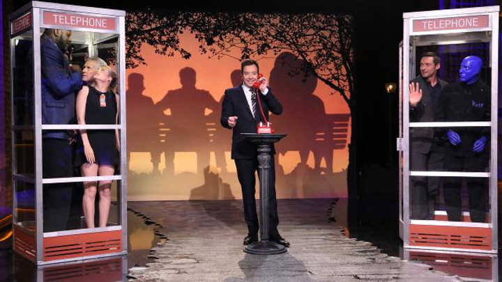 Jimmy Fallon debuted a new game on The Tonight Show on Monday night, in which guests stand in a phone booth that is slowly filled with other celebrities as the