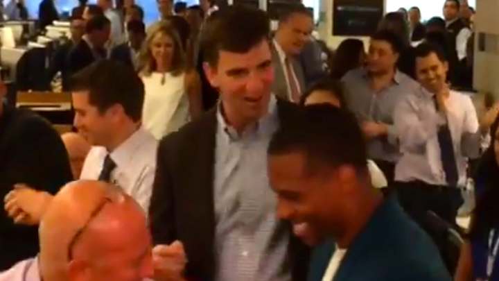 At a charity event, New York Giants’ Eli Manning and Victor Cruz danced the salsa. Manning’s moves were not smooth, but they might still be better than Tom Brady’s.