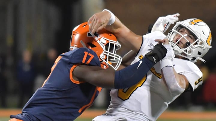 Illinois Edge rusher Gabe Jacas is well rounded. He is a good run defender with power. Watch him track this play, he's responsible for the QB if he keeps it. As soon as it's handed off, he triggers and takes down the RB. https://t.co/cMDJhnaZq8 pic.twitter.com/mLfsaJz39G