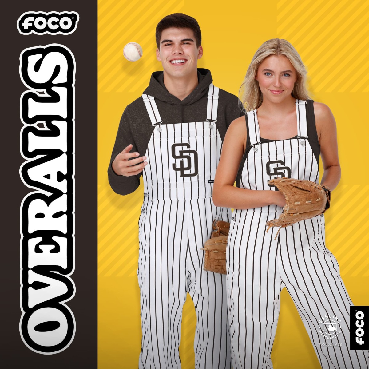 Of course! Anyone can wear FOCO’s Padres overalls. Their design is simple and versatile, meant to be worn by any and all fans. This makes them a great option for groups who want to match or couples looking to stand out at games or game day parties!