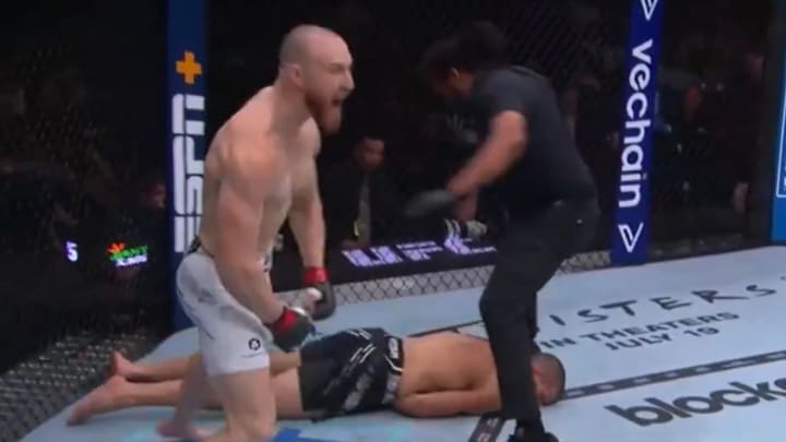 Facing Marc-Andre Barriault in the night's featured prelim, Pyfer was dead-set on returning to his winning ways after his first UFC defeat to Jack Hermansson. Pyfer won devastatingly, clubbing Barriault against the cage and finishing him executioner-style as he fell to his knees.