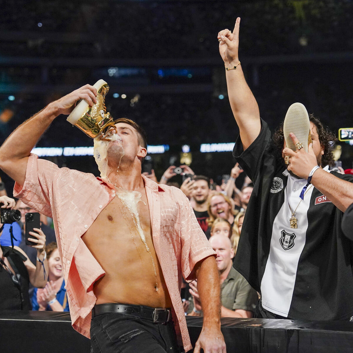 “To watch it live, they’re crazy athletes and they put on a tremendous show,” said Tuivasa, who drank a Shoey during the event with Grayson Waller. “I grew up a fan–Rock, Rikishi, Booker T, Mankind, those were my favorites. I used to go really hard with it when I was young. My little brother and son are big fans now, so I took them. UFC and WWE are together now, so it all fell into place.”