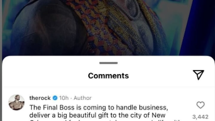 Later that night, The Rock commented on his post, revealing that he had a gift for New Orleans (reportedly WrestleMania 42) and was looking to "f*** up someone's life.