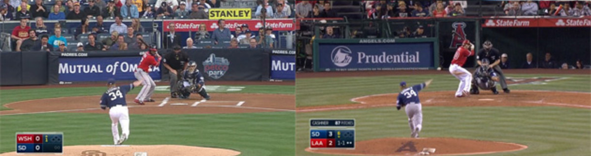 Time and time again, this is what we’re seeing from Cashner when he gets taken deep in 2015. Adrian Gonzalez got to him three times in his first start of the season, the final two of which were on the sinker. The video there tells the same story as the Joyce bomb.