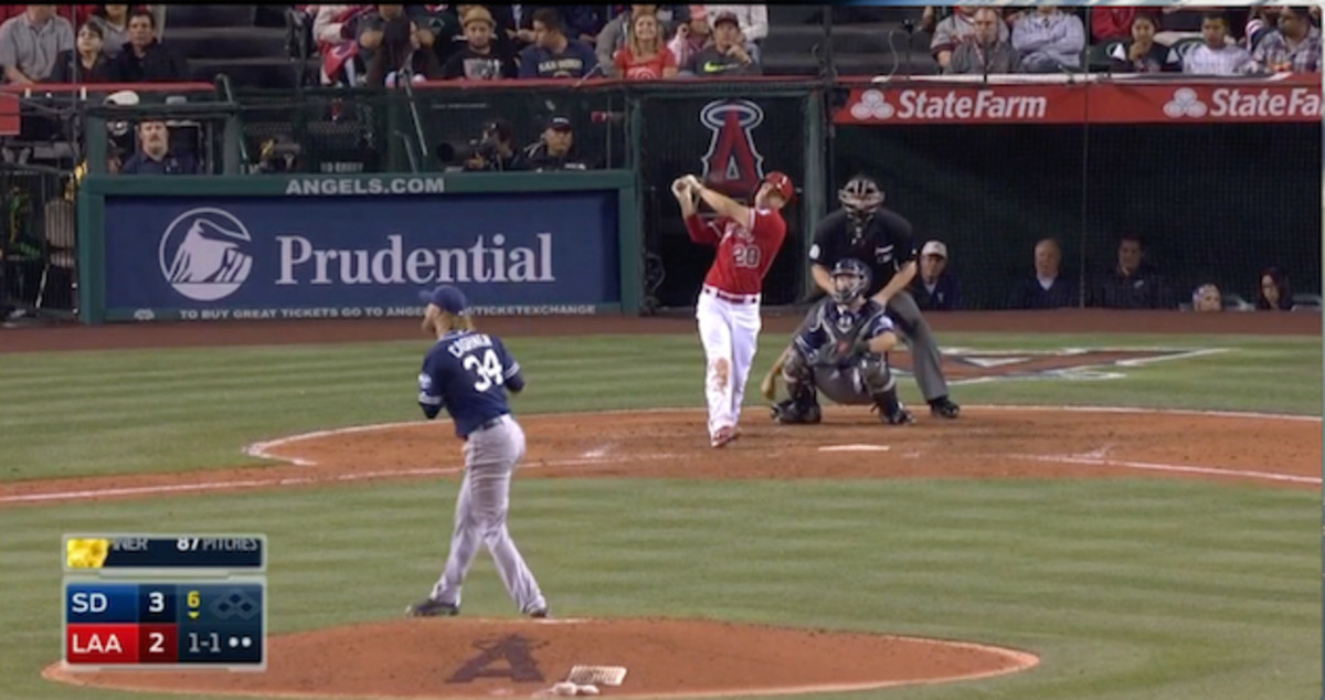By time Cashner releases the pitch, he’s not out in front with his chest over his kick leg, but leaning to his left. He falls way off to the first base side after releasing the pitch, signaling that his mechanics are out of whack. With his body sped up, his arm drags, forcing him to get underneath the pitch and leave it elevated. Joyce takes care of the rest.