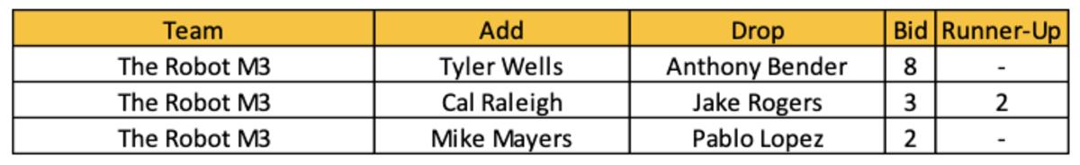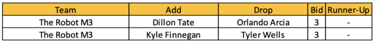 This week's only two additions in the waiver wire were Dillon Tate ($3) and Kyle Finnegan ($3). Both darts were dictated toward finding another option for saves.